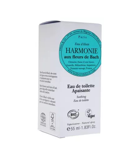 Offrez-vous une expérience sensorielle apaisante avec l'Eau de toilette Harmonie de 55 ml. Cette eau d'élixir subtile, certifiée bio par Ecocert, associe les bienfaits des fleurs de Bach à un parfum envoûtant. En plus de son parfum raffiné, cette eau de toilette vous offrira la possibilité d'être plus disponible et ouvert aux aspects positifs de la vie quotidienne. En favorisant une attitude sans inhibition, elle permet de saisir pleinement les moments de bienveillance que la vie nous réserve. Sa formule composée à 100% d'ingrédients d'origine naturelle, dont 83,6% issus de l'agriculture biologique, en fait un produit à la fois respectueux de la peau et de l'environnement.Cette eau de toilette apaisante renferme un mélange exquis d'alcool biologique, d'eau, d'un parfum enivrant, ainsi que des extraits de fleurs de Bach tels que Clematis Vitalba, Ornithogallum Umbellatum, Scleranthus Annuus, Helianthemum Nummularium, and Impatiens Glandulifera. Grâce à sa composition naturelle, elle offre un véritable bien-être physique et mental, tout en diffusant un parfum enivrant. Laissez-vous envoûter par ses notes de citral, citronellol, farnesol, geraniol et linalool, pour une expérience sensorielle unique et apaisante.Pour une attitude ouverte et positive au quotidien, l'Eau de toilette Harmonie est un choix idéal. Profitez des bénéfices subtils des fleurs de Bach tout en appréciant ce parfum envoûtant, pour une expérience olfactive et émotionnelle complète. Offrez-vous un moment de bien-être et de relaxation avec cette eau de toilette certifiée bio, et savourez chaque instant avec une attitude apaisée et ouverte aux bonnes vibrations de la vie. ...