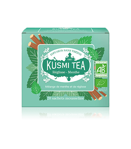 L’infusion Réglisse-Menthe de KusmiTea est 100 % bio et exclusivement composée de plantes. Elle vous accompagnera àvolonté, du matin jusqu’en soirée, et même le dimanche devant la cheminée.