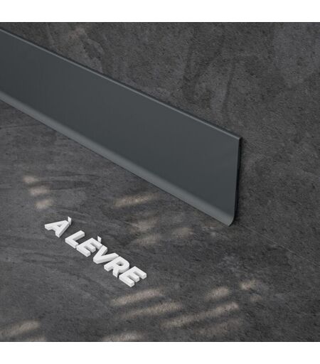 Plinthe à lèvre : la solution adaptée à toutes les surfaces La plinthe à lèvre PVC anthracite est idéale pour la finition des sols et des bordures de mur. Elle garantit hygiène, étanchéité, résistance aux chocs et facilité de pose. Sa lèvre de recouvrement épouse la forme du mur et permet de cacher esthétiquement les joints de dilatation et les irrégularités de pose des parquets, carrelages et sols stratifiés. Que ce soit pour l'aménagement ou de la rénovation, la plinthe à lèvre PVC anthracite convient pour un usage intérieur uniquement. En PVC rigide, la plinthe à lèvre résiste aux poussières et à l’eau, elle peut se poser sans aucun problème dans les pièces humides : cuisines et salles de bain. Grâce à sa forme spécifique, l’utilisation de la plinthe à lèvre PVC est également recommandée dans les locaux agroalimentaires comme les restaurants, cuisines, boulangeries, cafétérias, hôtels ainsi que dans les établissements et magasins nécessitant le respect de normes d’hygiène strictes. ...
