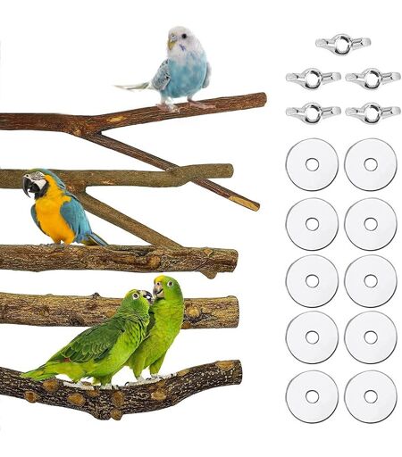 Chenquansarl-Lot De 5 Perchoirs En Bois Naturel Pour O Aux, Perruches, Calopsittes, Conures, Aras, Pinsons, O Aux Amoureux