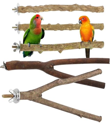 Chenquansarl-5 Pièces Perchoir Perroquet En Bois Naturel, Perroquet Jouet Branches, Perchoir À O Aux En Bois Pour Perroquet, Perchoirs Pour Cages À O Aux Pour Petites Perruches, Calopsittes, Conures