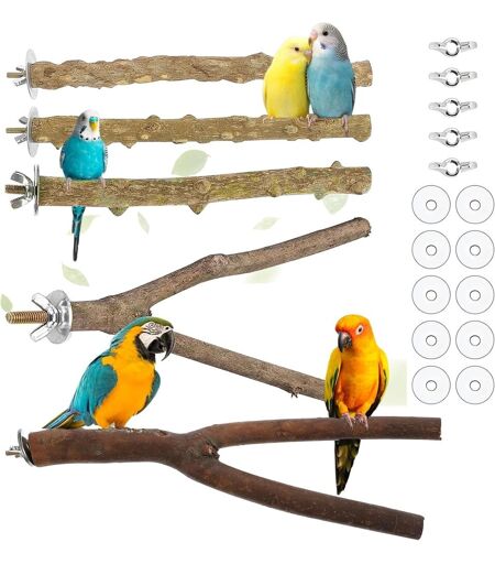 Chenquansarl-5 Pièces Perchoir Perroquet En Bois Naturel Perchoir À O Aux Perroquet Jouet Branches Facile À Installer Pieds Perchoirs Pour Cages À O Aux Pour Petites Perruches, Calopsittes, Conures