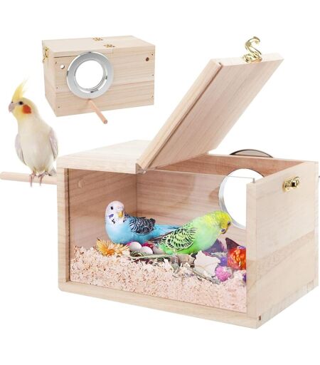 Chenquansarl-Nichoir Pour Perruches - Design Transparent - Nichoir À O Aux Avec Perchoir En Bois,Nichoir Pour Perruche, Nichoir Pour O Aux, Perruche, Cage Pour Perroquet