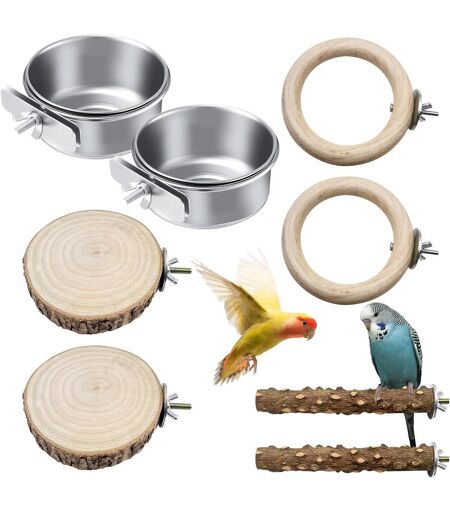 Chenquansarl-Lot De 8 Perchoirs Naturels Pour O Aux, Gamelles En Acier Inoxydable À Suspendre, Planche De Siège, Cage À O Aux, Accessoires Pour Calopsittes, Canaris, Agapornides