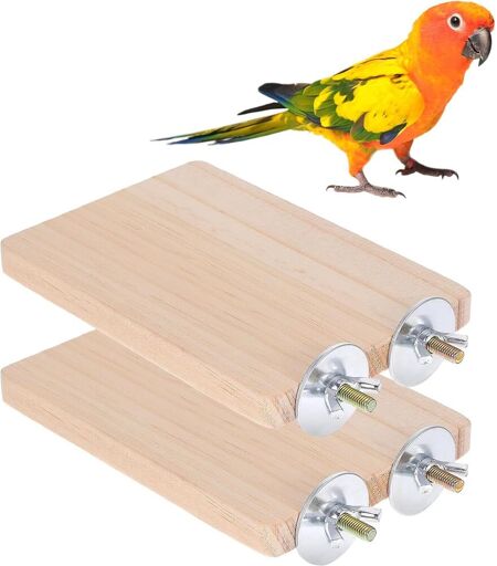 Chenquansarl-Lot De 2 Perchoirs Rectangulaires En Bois Naturel Pour Cage À O Aux - 12,7 X 8,9 Cm - Accessoires Pour Perroquet, Perruche, Calopsitte, Conure, Hamster, Chinchilla