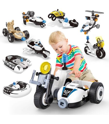 8 en 1, le plaisir de construire sur le thème de la voiture de - Ce jouet de construction coloré pour enfants leur permet de créer 8 grands modèles cools sur le thème de la voiture de , comme un jouet bateau gonflable, un hélicoptère, une pelleteuse et une chargeuse, ce qui offre un plaisir de construction et de jeu sans fin. Cet ensemble de jouets de construction stimule la créativité et offre des heures de divertissement pendant que les enfants constru nt et démontent différents designs. Facile à construire- Avec de grandes pièces faciles à manipuler, notre blocs technique Éducatifs pour enfants est conçu pour que les petites mains puissent construire sans effort. Le tournevis jouet inclus simplifie encore plus la construction et le démontage, inspirant les enfants à explorer et à créer leurs propres structures uniques.Matériaux de haute qualité- Fabriqués à partir de matériaux de haute qualité, les blocs de construction sont durables et sûrs pour les enfants. Les bords lisses permettent aux petites mains de jouer sans risque de blessure, ce qui rassure les parents. Ce jouet de construction convient aux enfants à partir de 5 ans et leur permet de s'amuser sans souci. Développement des capacités- Parfait pour les enfants dans leur phase de développement la plus créative, ce kit de jouet Jeu de construction voiture aide à améliorer la coordination ?il-main, l'imagination, la pensée logique et les capacités de résolution de problèmes. C'est une façon amusante et éducative de stimuler la croissance cognitive.161 pièces de jeu de construction- Ce jeu de bloc construction contient 161 briques et est livré avec des instructions entièrement illustrées, avec des instructions claires étape par étape et des photos des modèles. Ces instructions aident les enfants à découvrir de nouvelles possibilités et les gardent occupés pendant qu'ils maîtr nt l'art de la construction. Le cadeau parfait pour les enfants pour les surpr s de tous les jours, les fêtes, les anniversaires, les vacances et Noël.AttentionNe convient pas aux enfants de moins de 3 ans. À util r sous la surveillance d'un adulte.La livraison depuis la France est prévue dans 5 jours ouvrés, n'hésitez pas à passer votre commande ...