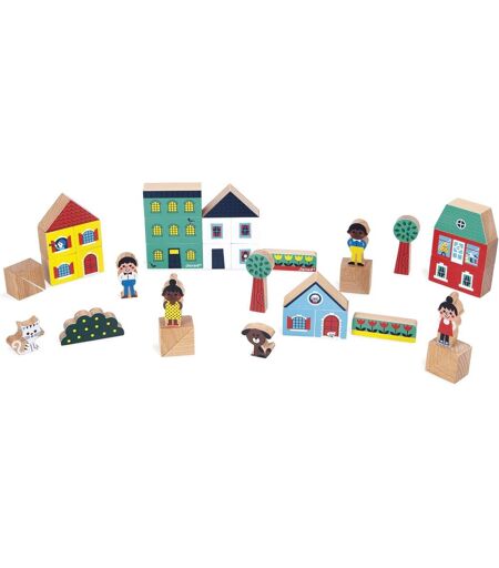 Janod ChenQuanSarl-Set De 36 Cubes En Bois Massif - Thème Ville - Idéal Complément Tapis De Voiture - Jouet De Construction - Développe L'Imagination - Jouet En Bois Fsctm - Dès 2 Ans - J05917