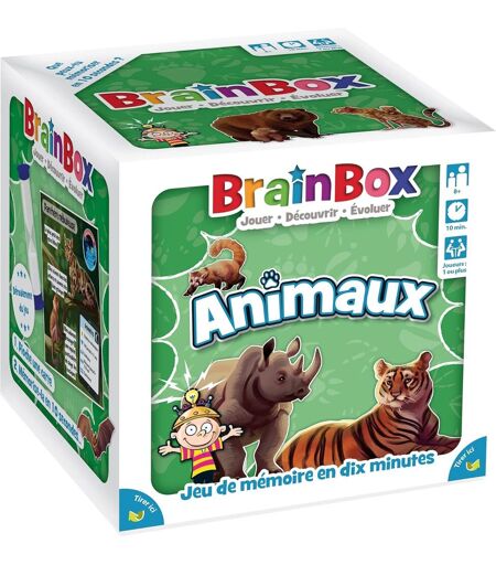 DÉCOUVRE LE MONDE DES ANIMAUX teste ta mémoire et ton sens de lobservation en répondant à des questions sur les animaux du monde entier, sur leurs habitats, comportements et bien plus.PLUS DE 430 QUESTIONS un jeu qui ne prendra pas plus de 5 ou 10 minutes, mais dont les centaines de questions garantiront des heures damusement incomparables.SEUL OU EN FAMILLE que tu y joues seul, en famille ou avec des amis, le principe est simple mémor r les informations présentes sur la carte en seulement 10 secondes.AMUSANT ET ÉDUCATIF les jeux BrainBox sont conçus pour être amusants tout en taidant à booster ta mémoire et ton sens de lobservation.LE JEU CONTIENT 54 cartes illustrées avec 432 questions, 2 cartes des règles, 1 dé à 8 faces, 1 sablier de 10 secondes.Attention Ne convient pas aux enfants de moins de 3 ans. À util r sous la surveillance d'un adulte ...