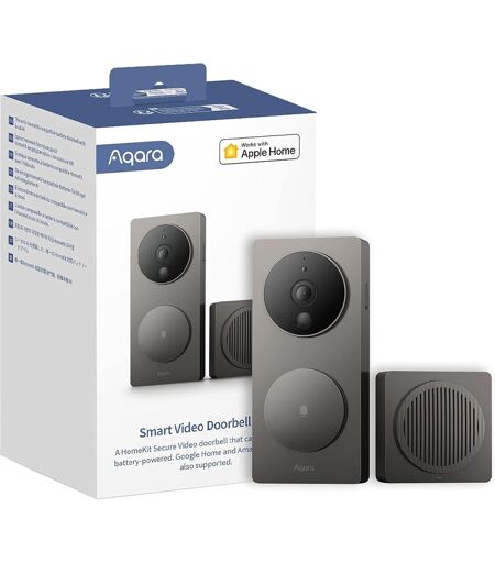 AQara Sonnette Vidéo G4 Avec Carillon, Sonnette Sans Fil Ou Filaire, Reconnaissance Faciale Et Automatisation,Wifi 2,4Ghz, 1080P, Sonnette Sans Fil Avec Camera, Compatible Homekit, Alexa, Google Home