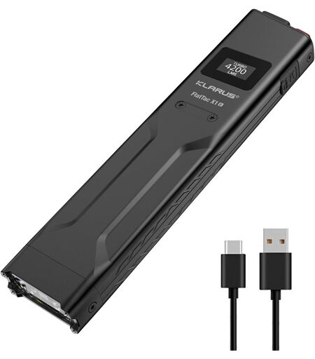 Flattac X1 Lampe De Poche Tactique Ultra Fine, 4200 Lumens, Lampe De Poche Puissante Et Compacte Avec Double Interrupteur, Écran Oled, Étanche Ipx6, Parfaite Pour L'extérieur, En Service
