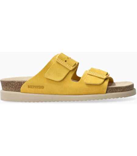 Modèle HESTER de la marque MEPHISTO : Cette mule légère est un indispensable pour un été décontracté. Brides réglables avec fermeture à boucle. Cette mule jaune pour femme est composée de cuir velours. ...