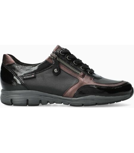 Modèle YLONA de la marque MEPHISTO : Ce sneaker ultra-léger garantit un excellent chaussant et un confort optimal. La doublure en cuir offre un climat sain à l'intérieur de la chaussure. Ce modèle noir pour femme est composé de cuir vernis froissé sur l'ensemble du pied avec des empiècements en cuir lisse et en cuir effet métallisé. ...