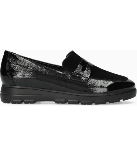 Modèle CARIMA de la marque MEPHISTO : Ce Mocassin, muni d'un double élastique de chaque côtés, séduit par son design élégant. La doublure en cuir assure un climat sain à l'intérieur de la chaussure. Ce slip-on noir pour femme est composé de cuir vernis froissé avec une touche de velours sur le dessus du pied. ...