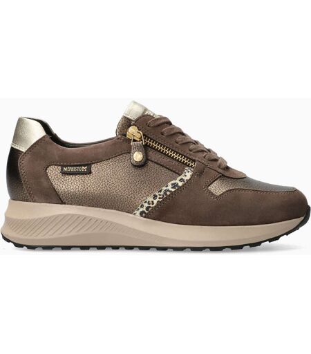 Modèle KIM de la marque MEPHISTO : Ce sneaker au look décontracté offre un confort et un chaussant optimal. Sa doublure associe cuir et textile pour plus de confort. Ce modèle marron pour femme est composé de cuir velours sur l'ensemble du pied avec des empiècements en cuir grainé lisse et en cuir velours imprimé imitation animal. ...
