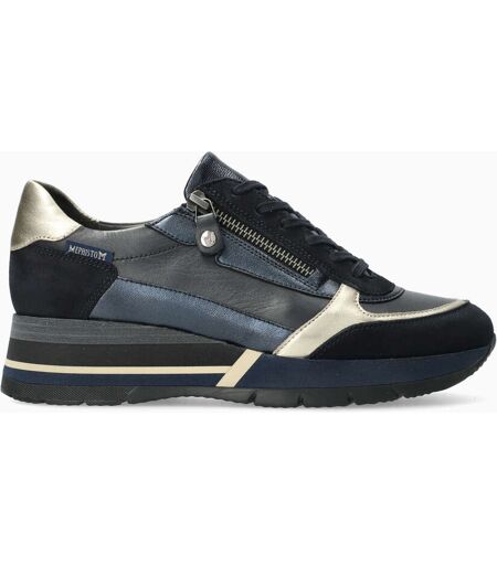 Modèle TIZIANA de la marque MEPHISTO : Ce sneaker au look tendance se caractérise par une coupe finement travaillée. La doublure en cuir assure une hygiène saine du pied. Ce modèle bleu pour femme est composé de cuir velours sur l'ensemble du pied avec des empiècements en cuir lisse et en cuir effet métallisé. ...