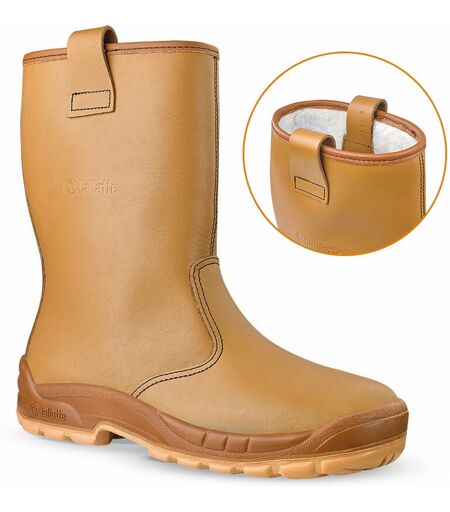 Botte de sécurité, coloris naturel . Hauteur de la tige 23,4 cm (pointure 42) Tige en cuir pleine fleur AP 23, hydrofuge et oléofuge une exclusivité Jallatte. ...
