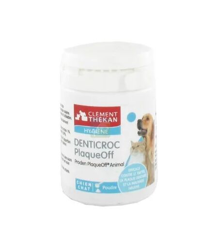 Clément Thékan est une marque réputée pour les animaux domestiques. En effet, à travers une gamme complète de produits, Clément Thékan offre à votre animal des produits répondant à ses besoins spécifiques, lui permettant bien-être et longévité. Il n’est pas rare de voir un animal avec des dents entartrées et en mauvais état. Et une grande majorité des propriétaires félins ou canins ne se soucie guère de la santé bucco-dentaire de votre animal. Pourtant, elle est vitale ! Les dents et la bouche sont les portes d’entrée d’un grand nombre de maladies. De même, une dentition abimée signifie des difficultés pour l’animal de se nourrir convenablement et donc une perte significative de sa longévité.Avec Denticroc PlaqueOff, finis les problèmes de dents chez votre animal. En effet, cette poudre, très simple d’utilisation permet d’améliorer significativement la dentition de votre animal de compagnie, chat ou chien, en luttant contre la plaque dentaire, le tartre ou la mauvaise haleine.Les résultats sont visibles dès les premières semaines d’utilisation pour un confort retrouvé. ...