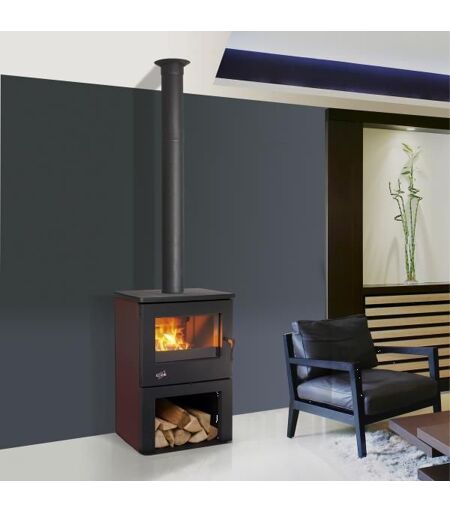 Poêle à bois Chinon - Habillage acier peint anthracite avec flancs émaillés carmin - Corps de chauffe en fonte - Chargement avant - Régulation manuelle - Raccordement arrière ou dessus Ø 150-153 mm. Le prix indiqué comprend la TVA à 20%. ...