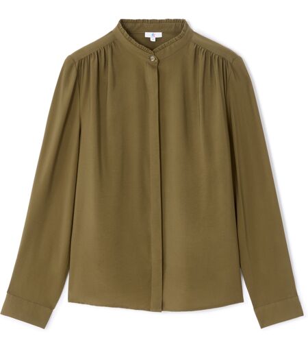 Pour la femme moderne qui embrasse la simplicité, cette chemise fluide kaki est l'essentiel d'un style réel et joyeux, conçue pour durer saison après saison. - Chemise fluide - Col Montant - Manches longues - Droite - Standard - En textile fluide - Fluide - Patte de boutonnage cachée - Boutons classiques - Boutons - Droite - Kaki - Pour une allure complète et complice, associez-la à un pantalon ajusté ou un jean brut et des baskets montantes. ...
