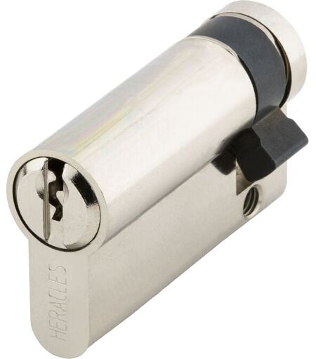 Heracles - Demi-cylindre européen 5 goupilles 5G 10x65mm pour fermeture anti-panique laiton nickelé 3 clés C100116