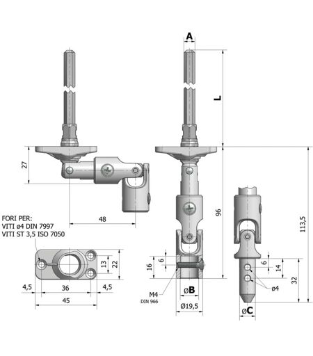 Sortie de caisson 30° pliable tringle acier hexagonale + platine nylon 22x45mm – Cherubini 80667032V1316