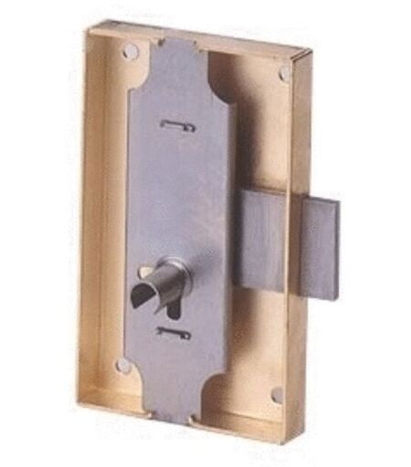 Serrure à coffre cambré 80x60mm axe 40mm lg 12 gauche finition fer Devismes 12033-005-G