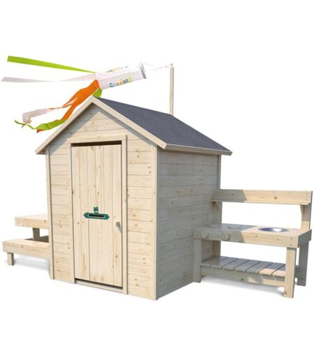 Description générale La maisonnette en bois Blanche est un espace de jeu idéal pour les enfants, favorisant l'imaginaire et la convivialité. Équipée d'une mini-cuisine en bois et d'une table de pique-nique, elle permet à jusqu'à 5 enfants de jouer ensemble, leur offrant des heures de divertissement en plein air. De conception simple et authentique, cette cabane est également facilement personnalisable pour le plaisir des petits et des grands. Spécifications techniques Dimensions hors tout : Longueur 302 cm x Largeur 127 cm x Hauteur 162 cm Surface extérieure : 3,55 m² Dimensions intérieures : Longueur 116 cm x Largeur 116 cm Surface intérieure : 1,35 m² Dimensions de la porte : Longueur 56 cm x Largeur 126 cm Dimensions de la fenêtre : Longueur 57 cm x Largeur 45 cm Hauteur de la cabane : 160 cm Épaisseur du plancher : 16 mm Compatibilité et accessoires Peut accueillir jusqu'à 5 enfants de 3 à 12 ans Mini-table façon pique-nique et mini-cuisine en bois installables à droite ou à ...