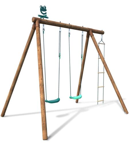 Livraison uniquement en france métropolitaine (hors Corse et Monaco). Livraison effectuée au pas de porte du domicile de l'acheteur. Aucune manutention ne sera effectuée par le transporteur (pas de livraison à l'étage...).Portique Arthur compact bois 2 balançoires + échelle Le portique Arthur combine deux balançoires réglables et une échelle en corde pour grimper haut, le tout dans un format compact parfait pour les petits jardins. Conçu pour 3 enfants de 3 à 12 ans, il offre un espace de jeu complet, entre détente et aventure. Un duo de balançoires Équipé de deux sièges individuels réglables en hauteur, Arthur permet à deux enfants de se balancer simultanément et de s'envoler vers de grands fous rires. Grimper jusqu'au sommet L'échelle en bois et corde, fixée sur un déport spécifique, garantit stabilité et sécurité. Une invitation à grimper à plus de 2 mètres de hauteur pour les plus téméraires. Structure pensée pour durer La poutre pré-percée facilite le montage et garantit un bon ...