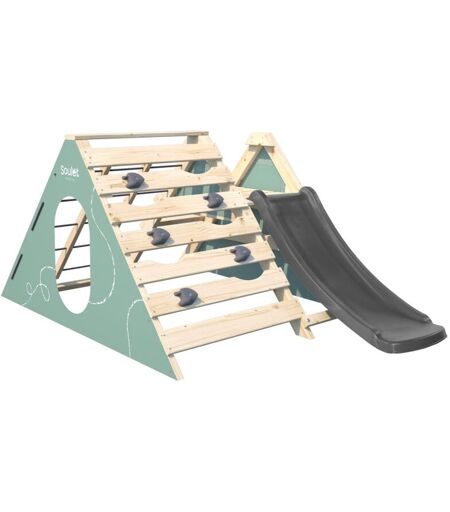 Livraison uniquement en france métropolitaine (hors Corse et Monaco). Livraison effectuée au pas de porte du domicile de l'acheteur. Aucune manutention ne sera effectuée par le transporteur (pas de livraison à l'étage...).HERCULE : une aire de jeux complète pour les premières aventures des tout-petits Conçue pour accompagner les enfants dès 18 mois, l'aire de jeux HERCULE stimule la motricité, l'équilibre et l'imaginaire grâce à une variété d'activités accessibles et ludiques. Avec son design compact, elle s'intègre parfaitement dans les petits espaces extérieurs comme intérieurs. Elle propose une glissade en toute sécurité avec un toboggan gris conçu à 80 % à partir de matières recyclées, un mur d'escalade avec prises adaptées aux petites mains, un mur filet renforcé pour une meilleure prise, ainsi qu'un espace inférieur à aménager en cabane secrète ou coin détente. Facile à monter et à déplacer, la structure HERCULE est livrée en carton avec tous les éléments nécessaires à ...