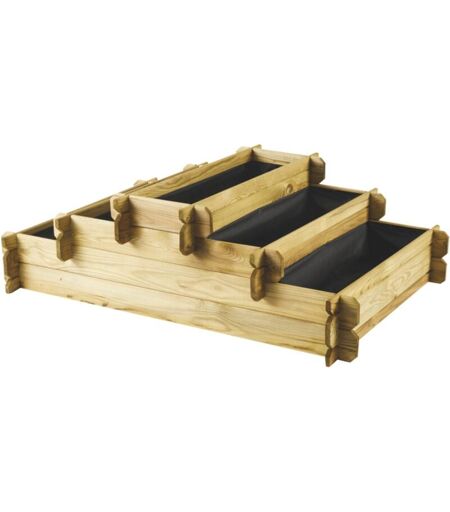 Description générale Le carré potager en bois Angelic est parfait pour la culture de vos légumes et plantes aromatiques, que vous soyez en ville ou à la campagne. Avec ses 5 grands compartiments, il vous permet de diversifier vos plantations et de favoriser la pousse simultanée de vos plantes. Fabriqué en pin sylvestre, ce carré potager est conçu pour résister aux intempéries et s'adapter aux variations de température. Il a été traité avec un procédé autoclave classe 3, garantissant l'utilisation d'agents conservateurs non toxiques. Chaque compartiment est doté d'un feutre géotextile pour assurer une bonne aération de la terre, éviter l'eau stagnante et favoriser le développement racinaire. Le bois utilisé provient de forêts gérées durablement. Spécifications techniques Dimensions du produit : Longueur 120 cm x Largeur 80 cm x Hauteur 36 cm Dimensions compartiment (centre) : Longueur 68 cm x Largeur 22 cm x Hauteur 38 cm Dimensions compartiment (étage) : Longueur 68 cm x Largeur 22 cm ...