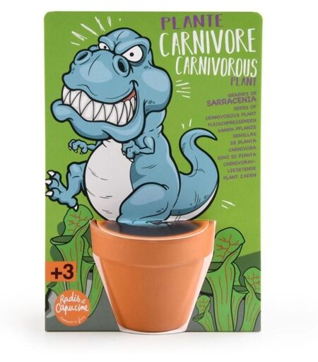 RADIS ET CAPUCINE T-rex dinosaure et plantes carnivores à semer - Carte avec pot
