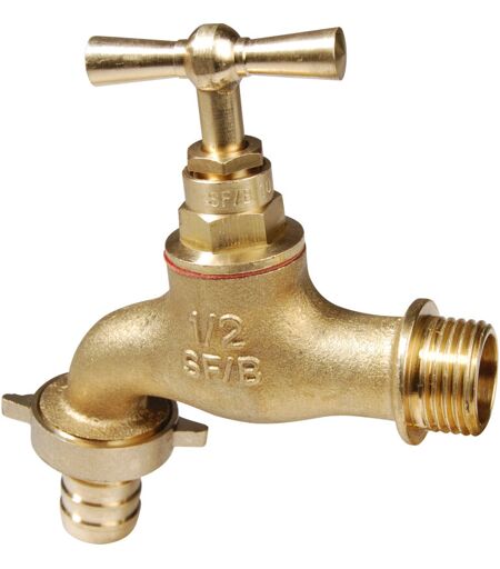 Sanitaire-distribution - Robinet de puisage laiton brossé - Tête à potence - raccord au nez 15x21 - 20x27