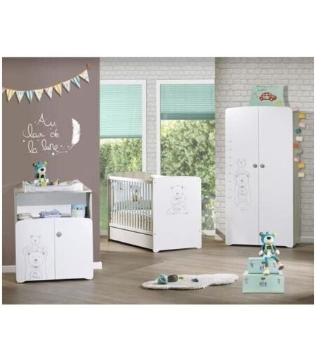 Baby Price - Chambre bébé trio Teddy: lit 120x60, commode a langer et armoire - Babyprice - Blanc