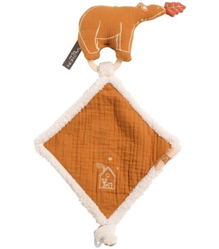 DOUDOU MOUCHOIR ORSINO Le doudou mouchoir Orsino en double gaze de coton camel et en éponge bouclette écrue toute douce, deviendra le fidèle compagnon de bébé. L'ours en relief lui permettra de l'attraper aisément en partant aux pays des rêves. L'anneau bois lui donne un aspect très naturel. Très pratique avec son attache sucette en angle! Système anti pincement de doigt. COMPOSITION: Bouclette, double gaze de coton DIMENSIONS: 19.5 x 3.8 x 35 cm NORMES ET QUALITE: EN71-1-2-3 CONSEILS D'ENTRETIEN: Lavage en machine à 30 °C maximum, programme normal. Ne pas utiliser d'eau de Javel pour traiter cet article. Ne pas sécher au sèche-linge. Repassage doux sur l'envers. Ne pas nettoyer à sec. ...
