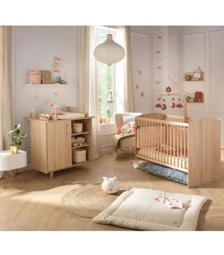 Chambre duo bébé Sauthon Sam Chene doré - Lit bébé 120 x 60 cm et commode a langer