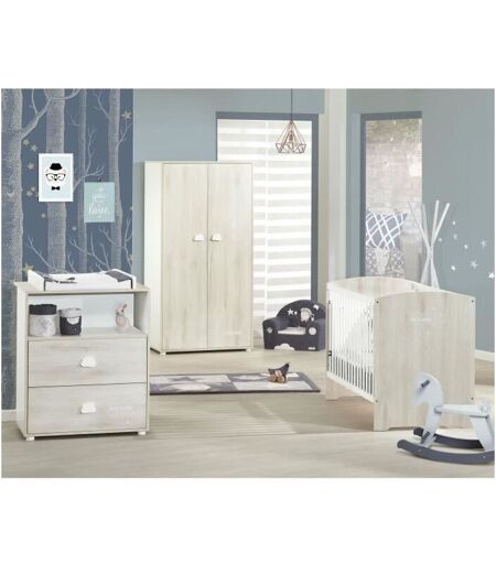 Découvrez la collection Smile Hetre Cendré, un univers doux et apaisant pour bébé. Avec son design élégant en bois clair et ses finitions délicates, cette chambre allie praticité et esthétisme. Le lit 120x60 cm, doté d'un sommier réglable en trois hauteurs, accompagne la croissance de votre enfant en toute sécurité. La commode avec table a langer intégrée et l'armoire spacieuse offrent un espace de rangement optimal pour un quotidien organisé. Des détails enchanteurs, comme les étoiles et messages inspirants, ajoutent une touche de poésie a cet ensemble intemporel. Offrez a votre bébé un cocon de douceur et d'harmonie ! ...