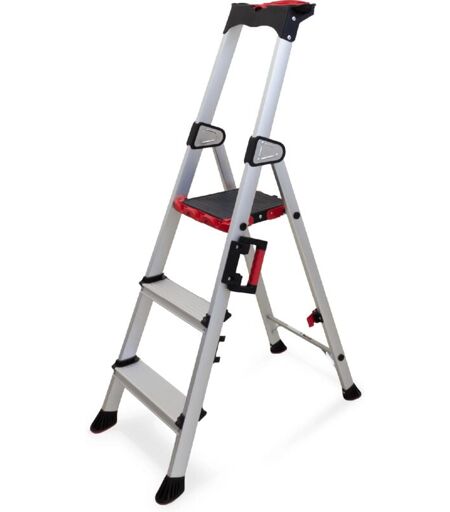 KELI - Échelle Pliable 3 Marches, Escabeau, Marchepied, Aluminium Robuste, Qualité Professionnelle, Poignée de Transport, Porte Outils ABS Dépliable