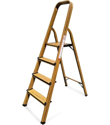 Keli - Escabeau Élégance Domestique 4 Marches (Hauteur d'accès au travail 2,80M), Marchepied, Fabriqué en Aluminium Finition bois (Chêne)