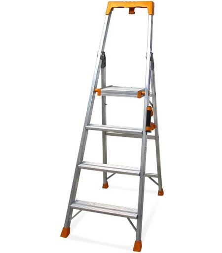 Keli - Escabeau Super Pro 4 Marches (Hauteur d'accès au travail 2,90M), Marchepied, Échelle Professionnelle, Poignée de Transport, Porte Outils abs