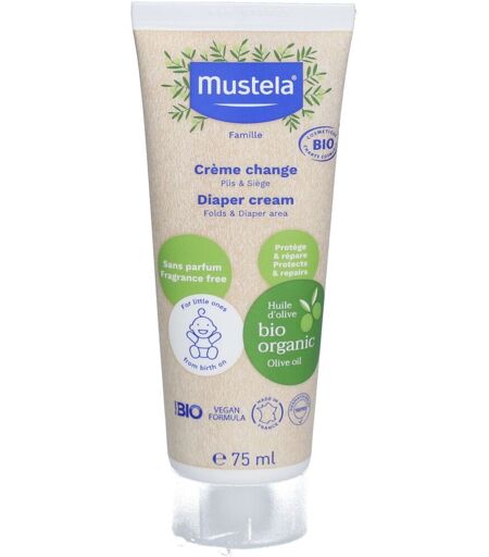 La Crème Change, certifiée BIO, s'utilise après chaque change, sur les fesses du bébé, dès la naissance*. Vegan et sans parfum, ce soin à l'huile d'olive bio apaise la peau, répare et favorise la disparition des rougeurs du siège.La Crème change, certifiée BIO, a été récompensée par une Victoire de la Beauté 2019-2020, dans la catégorie Soins BIO.*Bébés sortis de néonatologie.IndicationsLa crème change, certifiée BIO :Isole et laisse un film protecteur.Apaise la peau d'un change à l'autre.Répare et favorise la disparition des rougeurs du siège.Conseils d'utilisationAppliquer en couche épaisse sur les fesses propres et sèches du bébé.Principaux actifsOxyde de zincHuile d'olive BIO françaiseHuile de tournesol BIOAloe vera BIOCompositionAQUA/WATER/EAU, HELIANTHUS ANNUUS (SUNFLOWER) SEED OIL*, ZINC OXIDE, POLYGLYCERYL-2-DIPOLYHYDROXYSTEARATE, GLYCERIN, HELIANTHUS ANNUUS (SUNFLOWER) SEED OIL UNSAPONIFIABLES*, POLYGLYCERYL-3 DIISOSTEARATE, OLEA EUROPAEA (OLIVE) FRUIT OIL*, GLUCONOLACTONE, MAGNESIUM SULFATE, ETHYL LINOLEATE, SODIUM BENZOATE, LEVULINIC ACID, ALOE BARBADENSIS LEAF JUICE POWDER*, SODIUM LEVULINATE, CALCIUM GLUCONATE*Ingrédients issus de l’agriculture biologique.ConditionnementTube de 75 ml ...