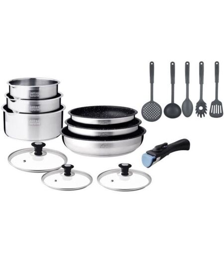 Arthur Martin - Batterie de cuisine induction AM1275 - Acier inoxydable - 15 pieces - Poignée amovible - Tous feux dont induc
