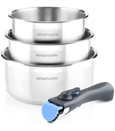 Arthur Martin - Set de 3 casseroles 16-18-20 cm AM3710 - Acier Inoxydable - Poignée amovible - Tous feux dont induction