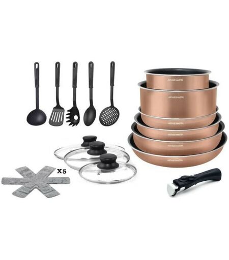 Batterie de cuisine 20 pieces Arthur Martin - aluminium - poignée amovible - tous feux dont induction