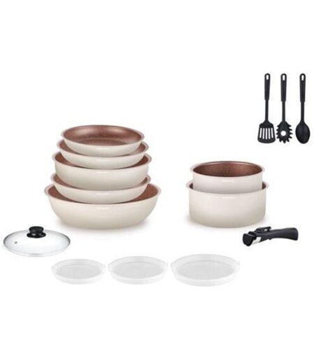 SHOP-STORY Batterie de cuisine Arthur Martin Batterie 18 pieces creme AM1453 CREME