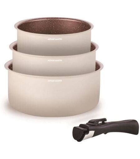 Arthur Martin - Batterie de cuisine - Tous feux dont induction AM2655 - Set de 3 casseroles -16-18-20 cm + 1 poignée amovible