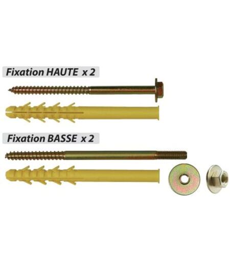 Description générale Fixation de chauffe-eau spécialement conçue pour les murs creux avec doublage en plaque de plâtre et isolant en polystyrène. Ce kit complet permet une installation facile et sécurisée de chauffe-eaux, de radiateurs et de chaudières murales. Spécifications techniques Composition du kit : 4 chevilles Ø 16 mm 2 tirefonds Ø 12 mm avec rondelles soudées 2 vis à filets Ø 12 mm + méplat 2 rondelles d'appui filetées Ø 12 x 42 mm 2 écrous Ø 12 mm 2 rondelles Ø 12 mm Longueur cheville : 240 mm Diamètre de perçage : 16 mm Épaisseur maximale à fixer : 100 mm Compatibilité et accessoires Compatible avec les chauffe-eaux d'une capacité maximale de 250 litres Idéal pour les installations sur des murs creux et isolés Installation Inclinez la fixation pour une meilleure résistance lors de l'installation. Utilisez un perforateur pour réaliser le perçage de 16 mm. Assurez-vous que la plaque de plâtre est suffisamment épaisse pour supporter le poids. Utilisation Utilisé pour fixer ...
