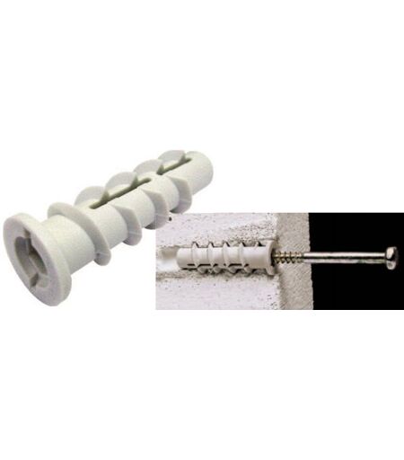 Tenue optimale dans le béton cellulaire. 100% nylon -Corps en polyamide 6. Très bonne tenue aux écarts de température -40 à 80°C. Permet l'utilisation de vis ordinaire, tire-fond ou boulon métrique. Visser avec embout 6 pans. ...
