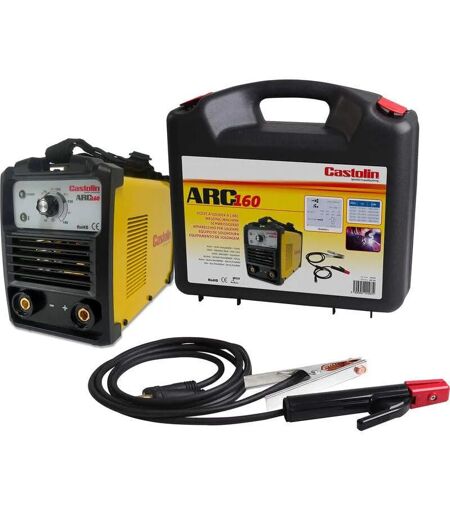 Poste à souder ARC160, 160 ampères. Poste à souder à l'électrode enrobée à technologie onduleur. • 230V/50Hz• Diamètre électrodes 1,6 à 4,0mm• Plage de reglage 10 à 160A• Livré en valise avec porte électrode, pince de masse, et marteau de soudeur. Fonctions Hot Start, anti-collage et Arc Force. Robuste, fiable et simple d'utilisation. Un très grand confort de soudage grâce à un arc très doux. Ref: 761979 ...