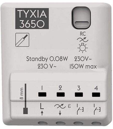 Récepteur filaire pour variation d'éclairage avec minuterie TYXIA 3650, référence 6351428 de Delta Dore Transformez un simple éclairage Marche/Arrêt en variateur Créez des ambiances lumineuses adaptées à votre rythme de vie Conservez le même modèle d'interrupteur que l'existant Découvrez l'offre de Pilotage des éclairages de Delta Dore ...