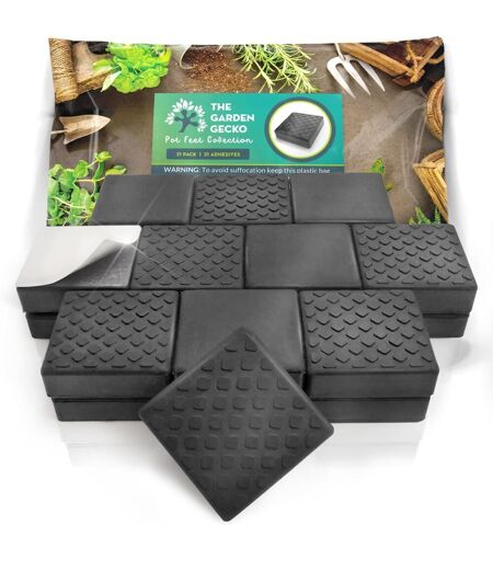 SIMPLIFIEZ LE JARDINAGE DES PLANTES ET DES FLEURS Soutenez les plantes, les pots de fleurs et les articles de jardin sur les pelouses, les patios et les terrasses pour surmonter les problèmes de taches, d'accumulation de saleté et d'infestation d'insectes.CHAMPION LOURD Avec 38 g chacun ou 798 g par paquet, nos rehausseurs de pot pèsent souvent 2 à 3 fois le poids moyen des articles en mousse plus légers. Nous fabriquons à partir de CAOUTCHOUC EPDM VÉRITABLE de haute qualité, inodore et testé jusquà 100 kg. Vous pouvez l'util r en toute confiance sans vous soucier de l'aplatissement et de la compression.DISCRET ET GRATUIT Ne vous inquiétez plus de casser ou de trébucher sur les pieds et les supports en céramique. Nos pieds restent discrètement rentrés sous les pots, permettant à vos plantes et fleurs de s'épanouir et de décorer votre jardin.TAMPONS ADHÉSIFS SUPER FORTS Comprend 21 tampons auto-adhésifs 3M à forte liaison pour une utilisation en option. Décollez et collez sur la base du pot, puis clipsez-le sur une base du pot pour un déplacement facile sans avoir à réorgan r. Nous visons la qualité et nous les emballons donc avec des tampons adhésifs haute résistance pour garantir une excellente liaison et adhérence dans toutes les conditions météorologiques.SOCLE CARRÉ ! Nos pieds carrés sont une alternative idéale aux pieds ronds. Avec 21 par paquet, ils sont parfaits pour les pots de taille régulière, permettant d'util r 3 pieds par pot. Bon jardinage ! ...